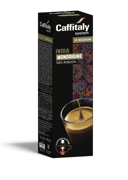 Dagli altipiani indiani , nasce un espresso 100% Robusta dallâaroma intenso e dal gusto deciso, con note di cioccolato e spezie. Questo 100% Robusta ha una massima cremositĂ di un colore marrone intenso. DallâintensitĂ aromatica elevata, allâolfatto si possono apprezzare sentori di cioccolata e spezie, con lievi note di cereali e legno.
