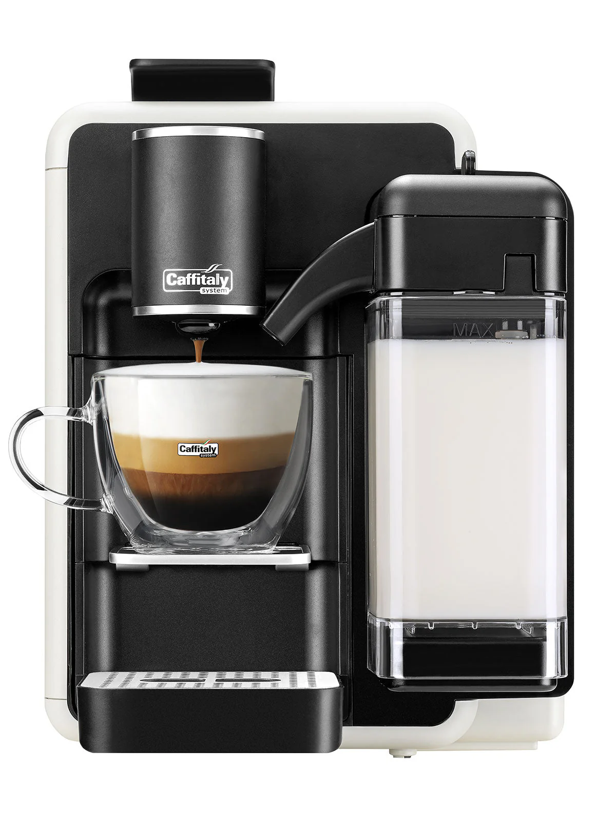 Macchina da caffè Quadra Caffitaly con montalatte integrato, per creare con un solo gesto sei diverse tipologie di bevanda. Un'esperienza di gusto superiore.